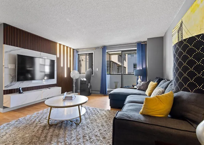 The spacious Modern 2 Bedroom Next To Stampede, 17Th W Parking Calgary apartment is situated 5 minutes' walk from Yuk Yuk's and 20 km from Calgary airport.